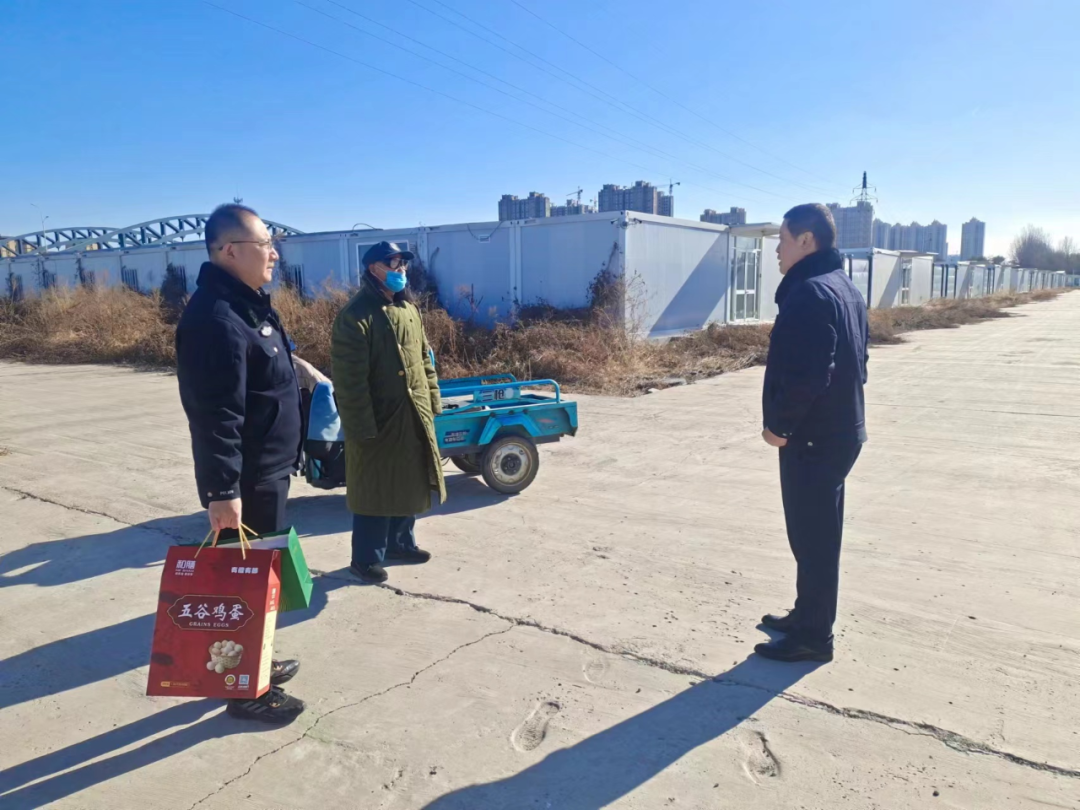 近日,金盾公司黨支部書(shū)記、執(zhí)行董事范丙磊同志到方艙醫(yī)院駐勤點(diǎn)走訪慰問(wèn)一線職工譚洪全同志,公司黨支部成員呂鵬、保安保潔服務(wù)二隊(duì)隊(duì)長(zhǎng)朱孝輝陪同。